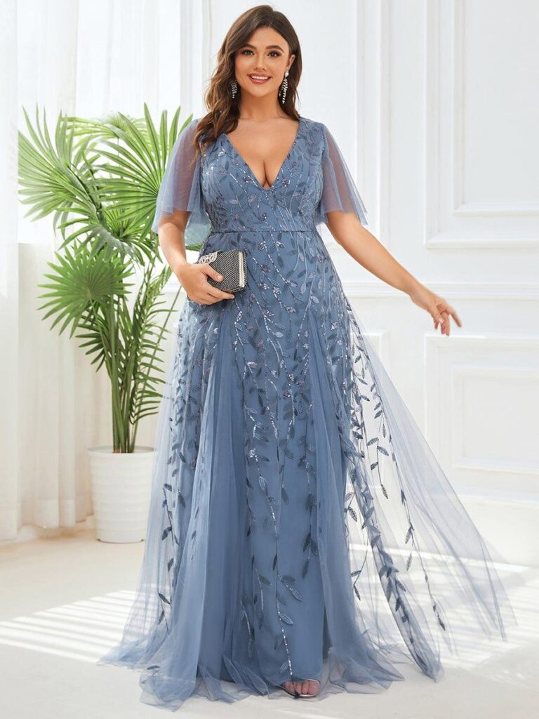 Double V-Neck Floor-Length Short Sleeve Tulle Bridesmaid Dresses