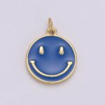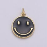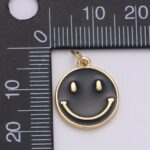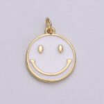 Epoxy Happy Face in Gold Round Charm, Enamel Happy Face Charm, Smiley Gold Enamel Charms, Dainty Smile charm, Teal, Red, White, Yellow, Cute Gold Smiley Face Gold Filled Charm – D-136 TO D-145