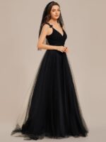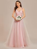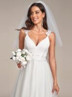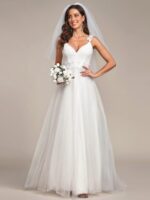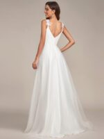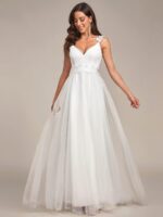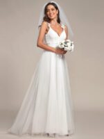 Double V Neck Lace Bodice Open Back Tulle Wedding Dress