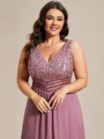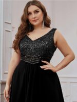 Be the first to review “Elegant Paillette & Chiffon V-neck A-line Sleeveless Plus Size Formal Evening Dresses” Cancel reply