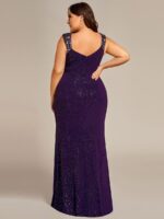 Make a dazzling entrance in this Plus Size Glitter V-Neck High Slit Sequin Shoulder Strap Evening Dress. The shimmering sequins create a show-stopping look, while the v-neckline and high slit add a touch of sophistication. Whether you’re attending a fancy cocktail party, a wedding reception, or a special celebration, this dress will make you the center of attention and leave a lasting impression.