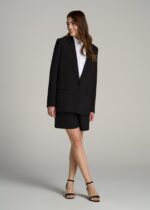 Boyfriend Fit Single-Button Blazer for Tall Women in Black