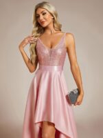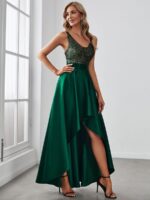 Featuring a sexy V neckline, an asymmetric skirt, this shiny high low prom dress is a perfect choice for people who are looking for an elegant look. We think this sparkly high low prom dress is perfect for evening party,cocktail,prom,homecoming,graduation,weddings,and any other formal affair!