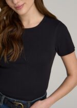 Short Sleeve Crew Neck Ribbed T-Shirt for Tall Women in Black
