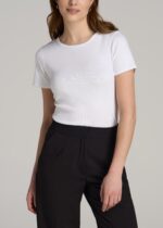 Short Sleeve Crew Neck Ribbed T-Shirt for Tall Women in Bright White