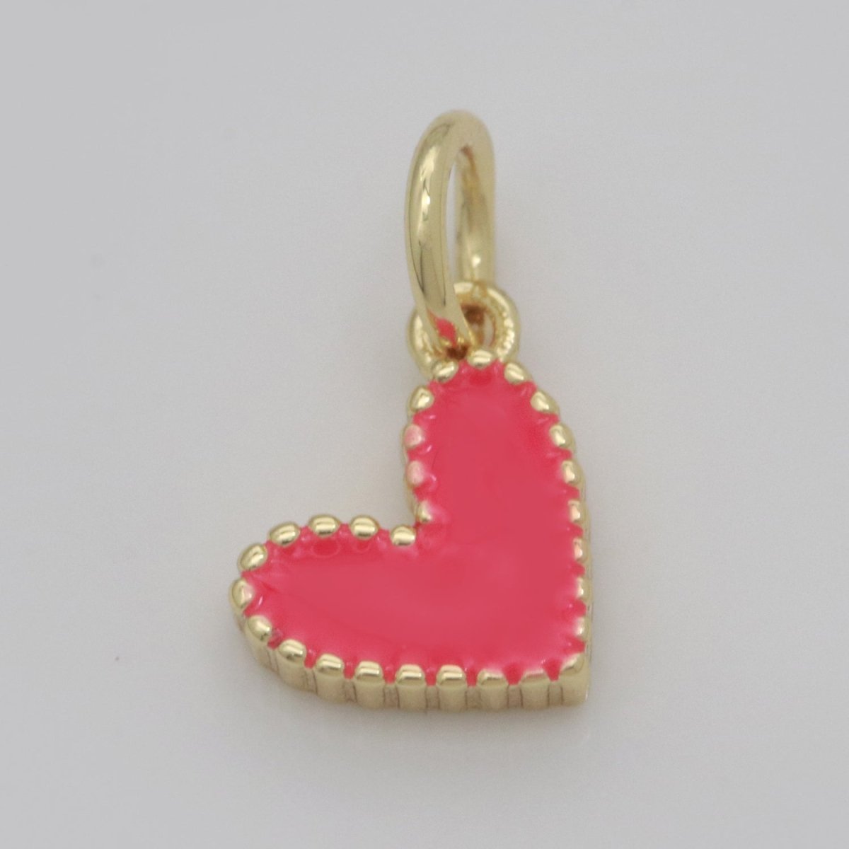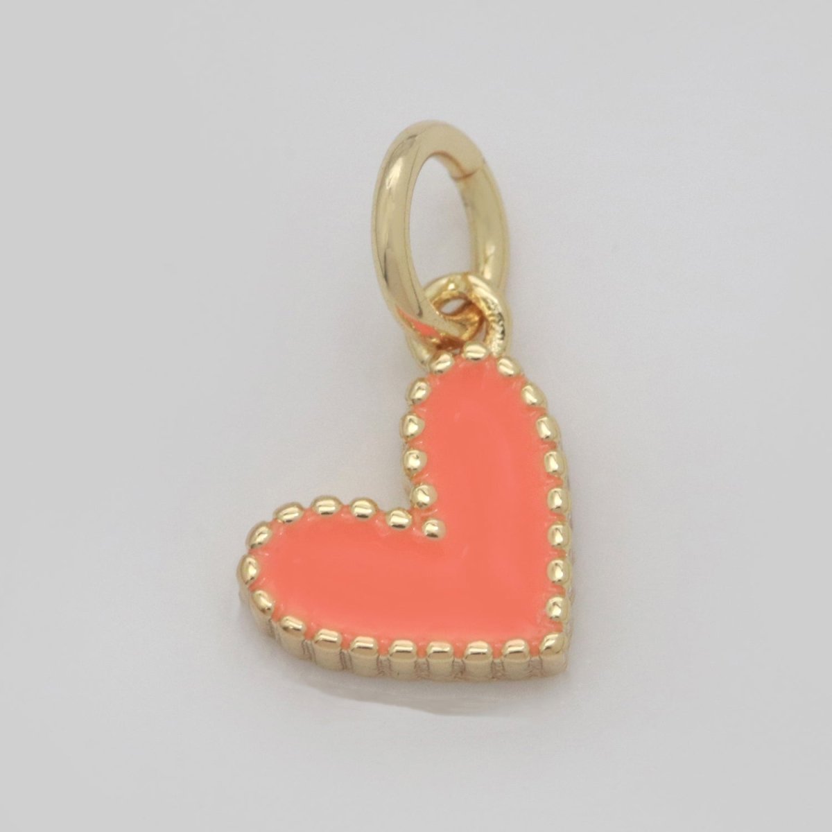 Small Gold Heart Charm – Dainty Enamel Mini Heart Add On Charm Tiny Colorful Heart Love Inspired Gold filled Pendant for Necklace Bracelet M-637 M-638 M-640to M-647