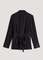 Linen Blend Tie Back Blazer For Tall Women in Black