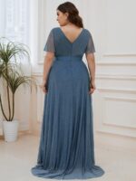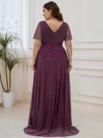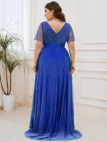 Be the first to review “Sparkling Short Sleeve V-Neck Ribbon Waist A-Line Evening Dress” Cancel reply