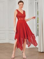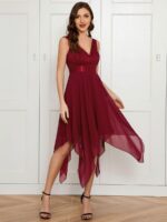 Stunning V Neck Lace Dress with Asymmetrical Hems