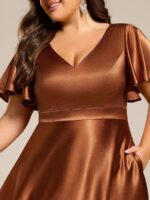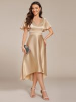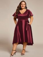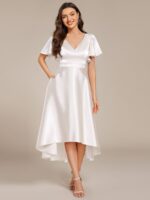 V-neck High-Low Satin Wedding Guest Dress with Pockets