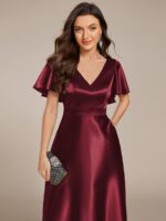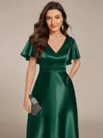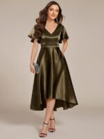 Be the first to review “V-neck High-Low Satin Wedding Guest Dress with Pockets” Cancel reply
