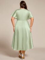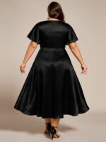 Elevate your wedding guest look with this sophisticated satin midi dress. Designed with a flattering V-neckline and short sleeves, this high-low silhouette adds a touch of modern flair. Functional pockets make it as practical as it is stylish, while the smooth satin fabric drapes beautifully to enhance your curves. This versatile dress transitions effortlessly from daytime ceremonies to evening receptions.